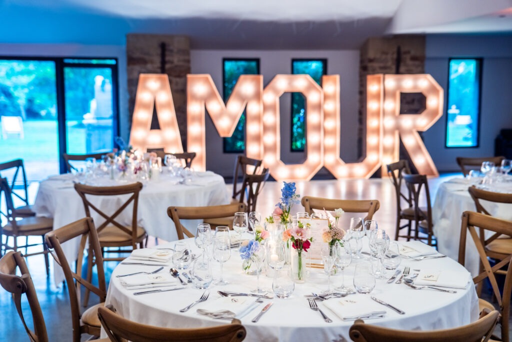 Couleurs, matières, fleurs, papeterie, mobilier ou éclairage : chaque élément est pensé pour former un ensemble harmonieux et élégant. Cette prestation est réalisée en collaboration avec Emma de Papaye Décorations, avec qui nous travaillons main dans la main pour donner vie à votre projet.